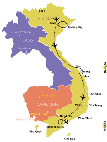 My Vietnam trip 14 days offers almost Vietnam highlights: Hanoi, Halong Bay in the Red River Delta, the Central Vietnam: Hue, Hoi An and HCMC, Cu Chi and the Mekong Delta...