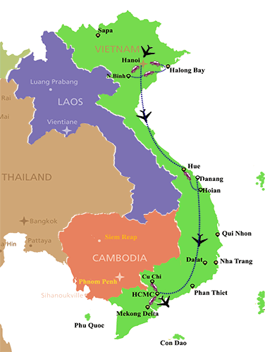 Staring from HCMC, you will explore its historical attractions and colorful outdoor markets then visit the Cu Chi, join in the floating market , explore the Central Vietnam..