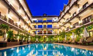 Equipped with premium room amenities and facilities and services, its’s elegant and unique Khmer architecture is boosted with cool and fresh air, flower fragrance and a salt-water pool at the center. Hotel is just 5 minutes from the national museum, night market and pub streets and about 7 km drive from the airport and the Angkor UNESCO Heritage Site.