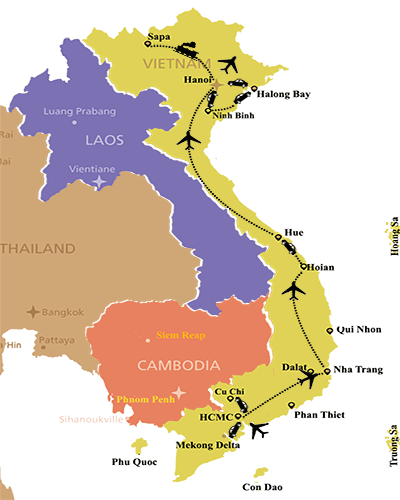 Sightseeings: HCMC-Cu Chi-Mekong Delta-Nha Trang-Hue-Hoi An-Hanoi-Halong Bay – Sapa