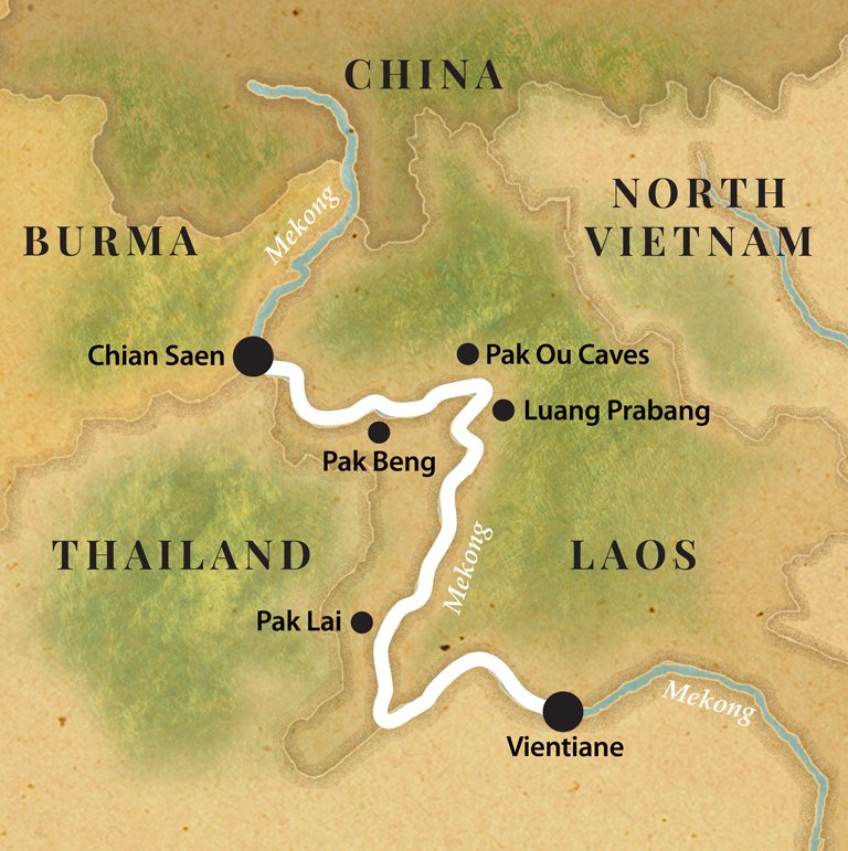 Enjoy a three country expedition as we will traverse Laos to touch Thailand and Burma at the once notorious Golden Triangle. From Vientiane, the old French capital, and so redolent of L’Indochine Pandaw will be the first river expedition since pre war days to cross all Laos. We stop two nights at the UNESCO World Heritage Site of Luang Prabang with its dazzling wood carved monasteries and then on deep into the mountains, through rapids and gorges on our high powered little Pandaw. Visit tribal villages and explore into jungle and countryside. As the first year of operation, please anticipate many a change – but a great adventure!